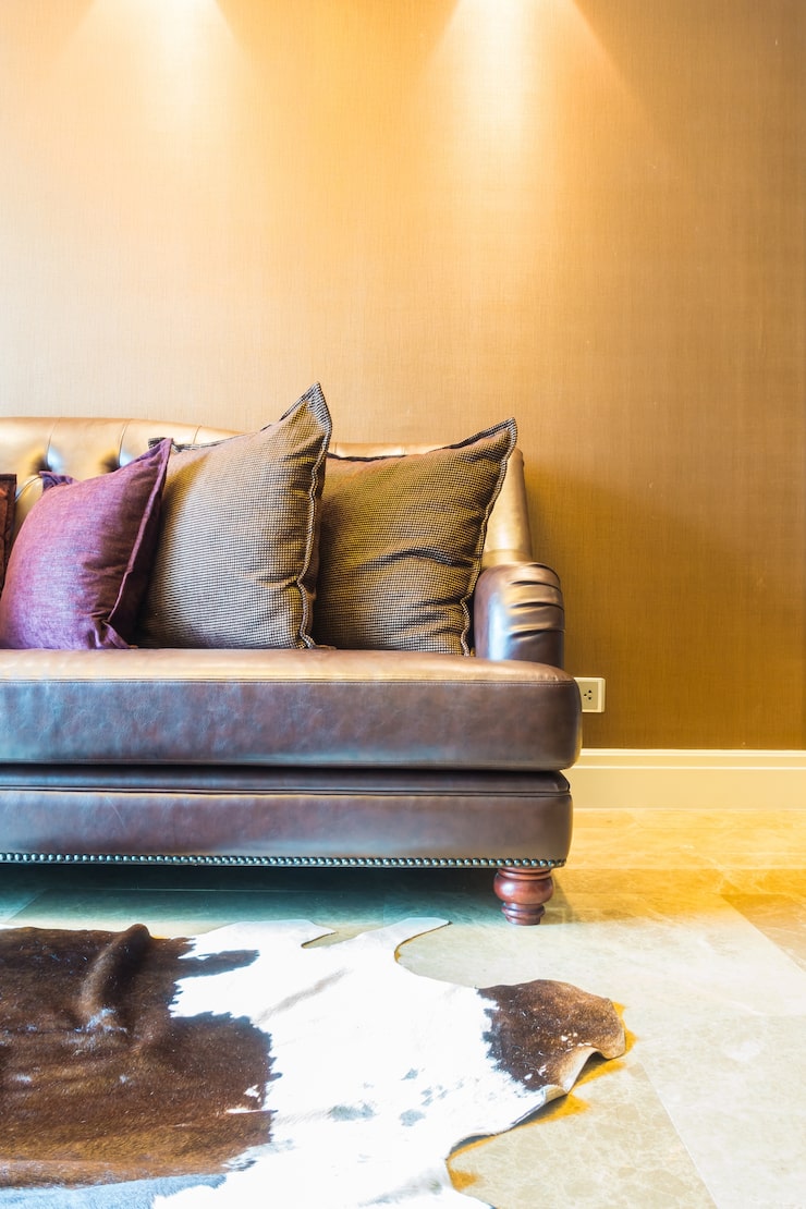 Для придания залу изысканности стоит отдать предпочтение мягкой мебели, сочетающейся по цвету со стенами, но отличающейся более насыщенным оттенком. Так, к бежевым стенам можно подобрать диван коричневого цвета, или же выбрать синий диван для комнаты со светло-голубыми стенами.