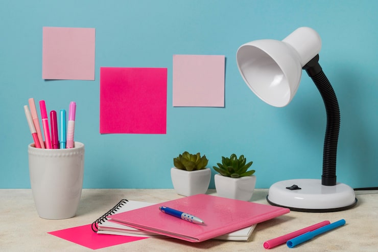 Совет для всех, кто работает с текстом: слишком яркие статуэтки, картины или постеры могут создавать визуальный шум и отвлекать от рабочего процесса. Чтобы не снижать концентрацию, оставляйте на столешнице только самое необходимое.