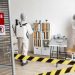 Даже в ванной комнате, занимающей всего 3 квадратных метра, можно организовать хранение. Стиральная машина встроена под столешницу из металла, а рядом находятся потайные ниши для хозяйственных средств. Внешне пространство кажется организованным и целостным.