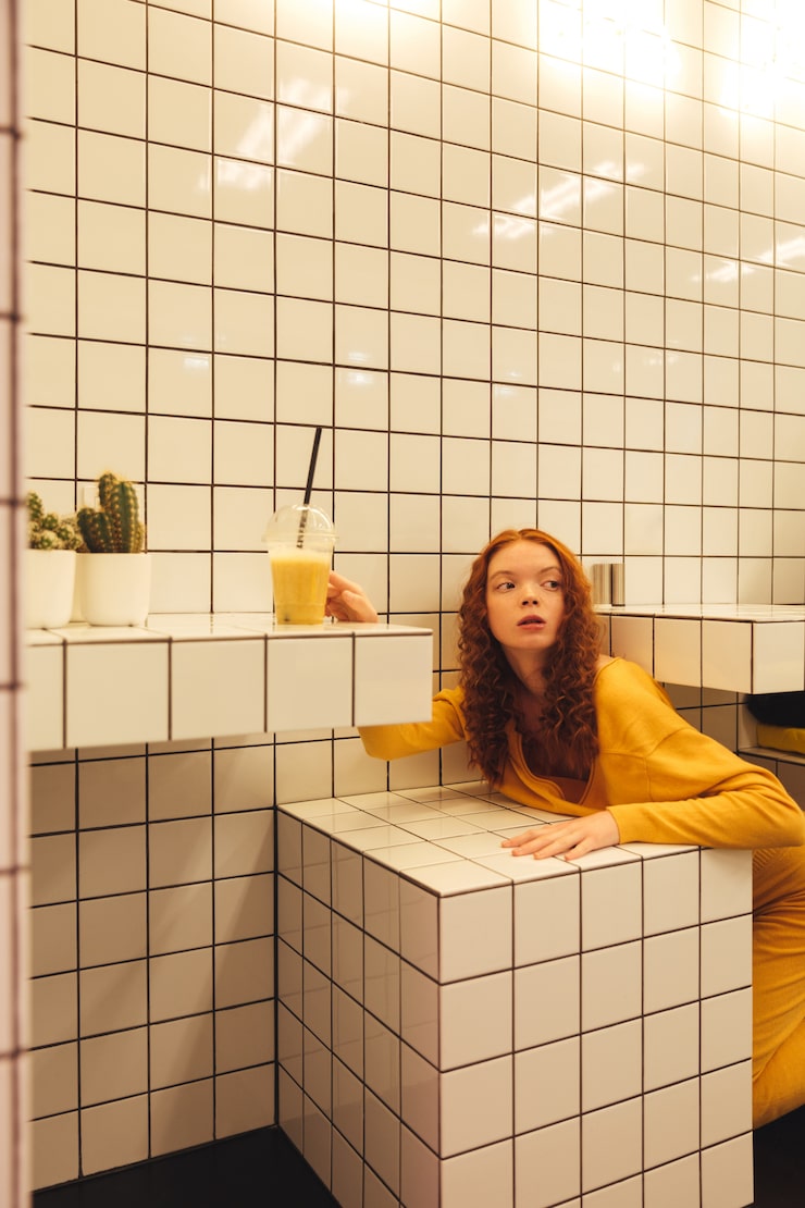 Изначально эта студия, занимающая 35 квадратных метров, проектировалась как городское жилье для временного пребывания — пространство, в котором ключевую роль играет не функциональность хранения, а ощущение выразительности. Интерьер был разработан дизайнером Оксаной Олейник на основе цветовой модели CMYK, задав четкую логику для всех зон. Цвет здесь инструмент для зонирования и настроения, а санузел стал одним из самых эффектных помещений.