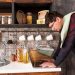 Необычным элементом кухонного дизайна стало окно, расположенное над мойкой. Оно не только выполняет декоративную роль, но и зрительно увеличивает пространство, а также обеспечивает доступ естественного освещения в прихожую, делая небольшое помещение у входа более комфортным и светлым. Это прекрасный вариант для небольших квартир, где необходимо эффективно использовать каждый квадратный метр.