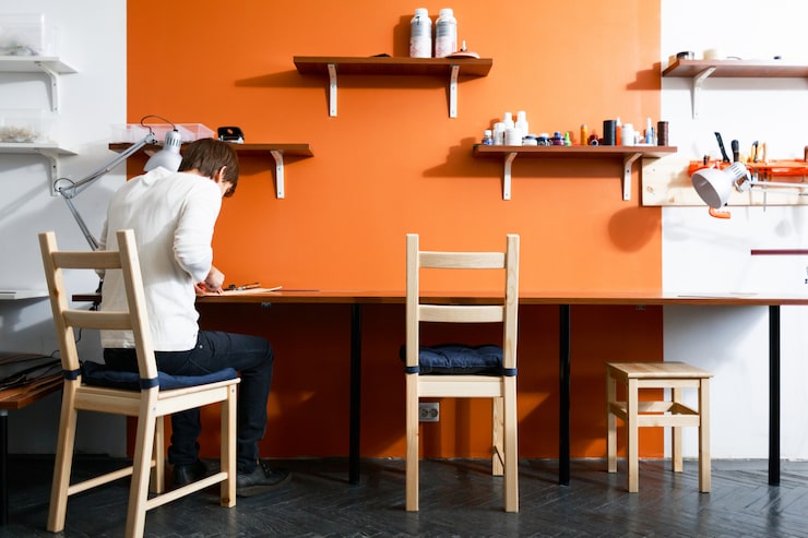 Например, если комната вытянутая по вертикали, можно покрасить потолок в оранжевый цвет. Это визуально уменьшит высоту потолка и расширит стены. В комнатах с небольшим размером его не стоит использовать в качестве фона.