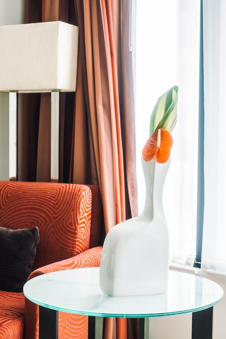 Этот оттенок также способен привнести ощущение свежести. Если комната лишена достаточного освещения или окна ориентированы на север, добавление нескольких ярких акцентов будет вполне уместным. Оранжевые шторы могут стать отличным дополнением к интерьеру, наполняя пространство энергией.