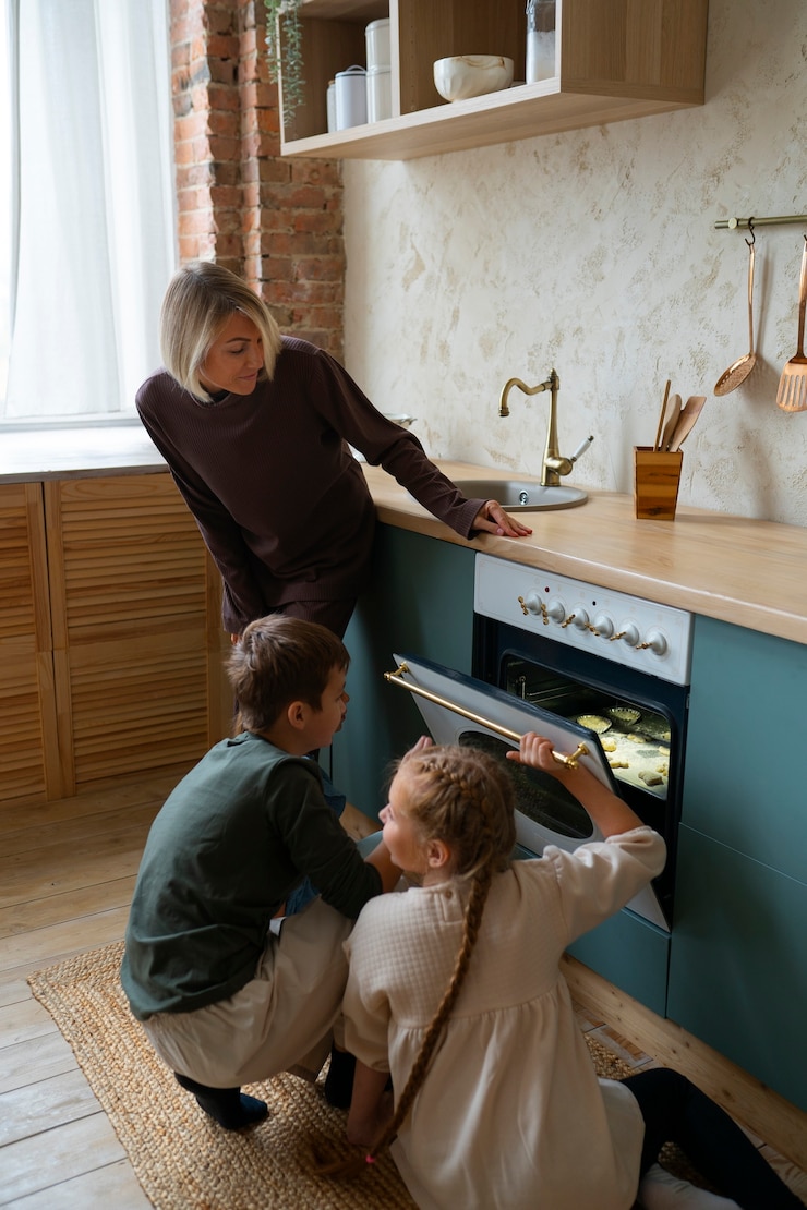 «Мы намеренно выбрали варочную панель с тремя конфорками, так как она более компактна», – рассказывает хозяйка. «Это дает возможность сэкономить место на столешнице». В комплект бытовой техники входят: