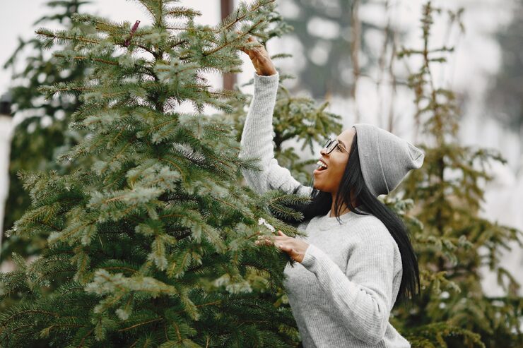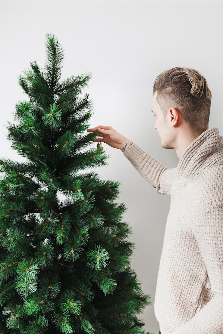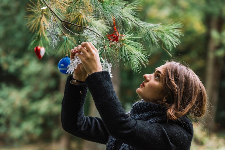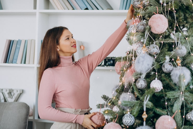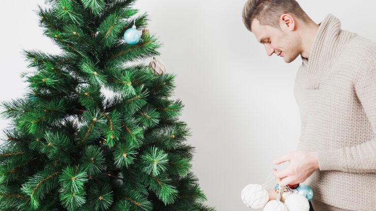 Для создания праздничной атмосферы можно украсить сухие ветки или декоративное дерево игрушками и гирляндами. Этот прием понравится тем, кто предпочитает лаконичность, и гармонично дополнит интерьер, оформленный в скандинавском стиле.