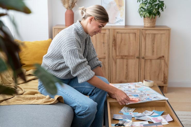 В этой квартире множество предметов, каждый из которых имеет свою историю: светильник в столовой создан руками художницы, на кухонной полке – картина с лимоном, написанная Василием Ханнановым, а в спальне можно увидеть триптих Нелли Акчуриной. Эти вещи – не просто украшения, а важная составляющая интерьера, повествующая о семье.