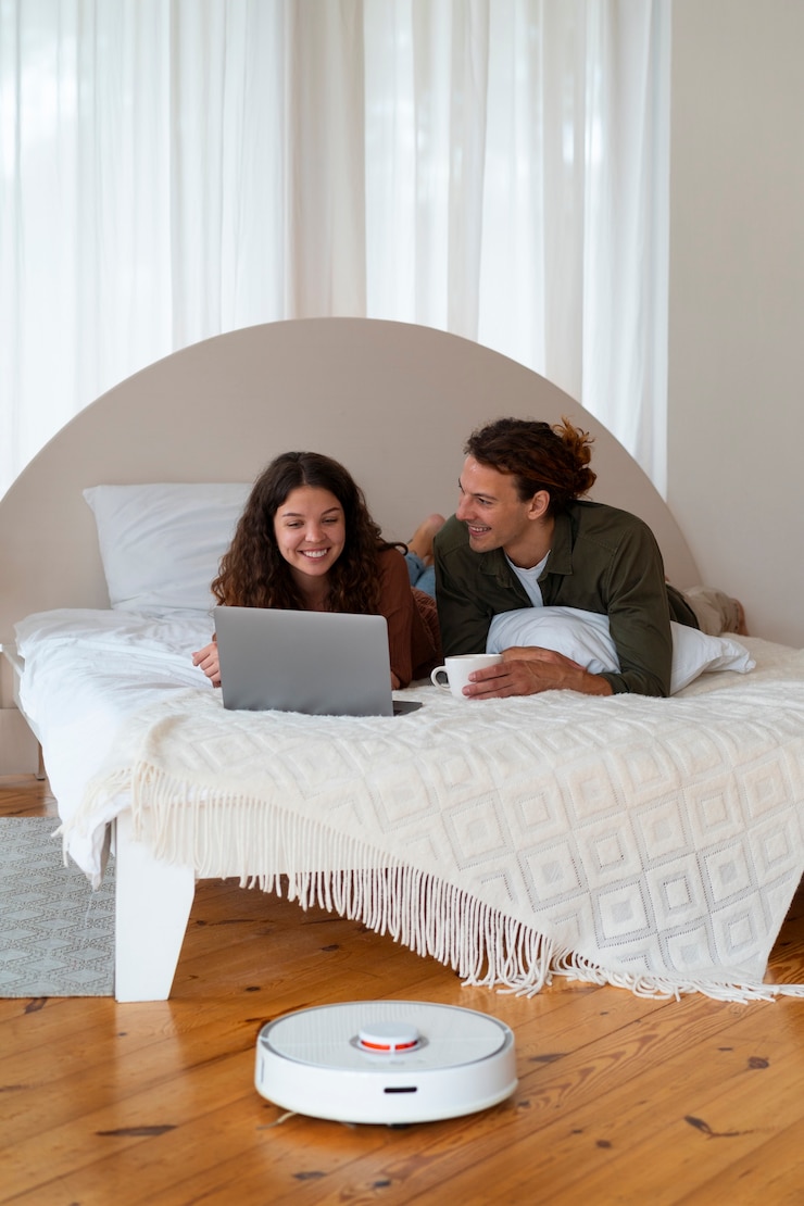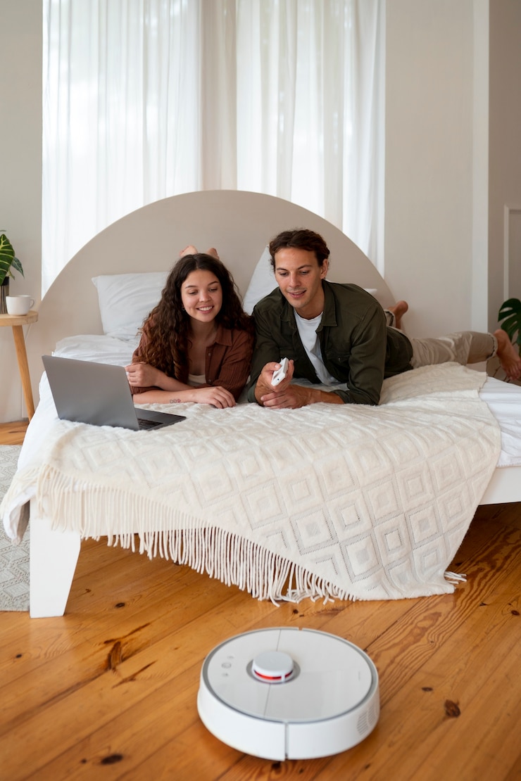 Строительство стен разделило прихожую от основной зоны, создав дополнительное хранилище. Кухня-гостиная стала сердцем квартиры. Спальную зону разместили возле окна, отделив стеклянной перегородкой с текстилем для уединения. Благодаря этому в гостиную попадает солнечный свет. В санузле оборудование было перенесено: унитаз сместили от стояка, что позволило разместить полноценную ванну, умывальник и стиральную машину. Такая перестановка создала привлекательный вид при входе в помещение.