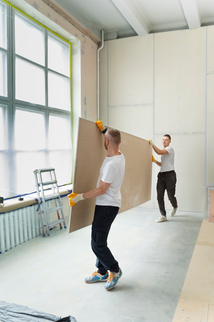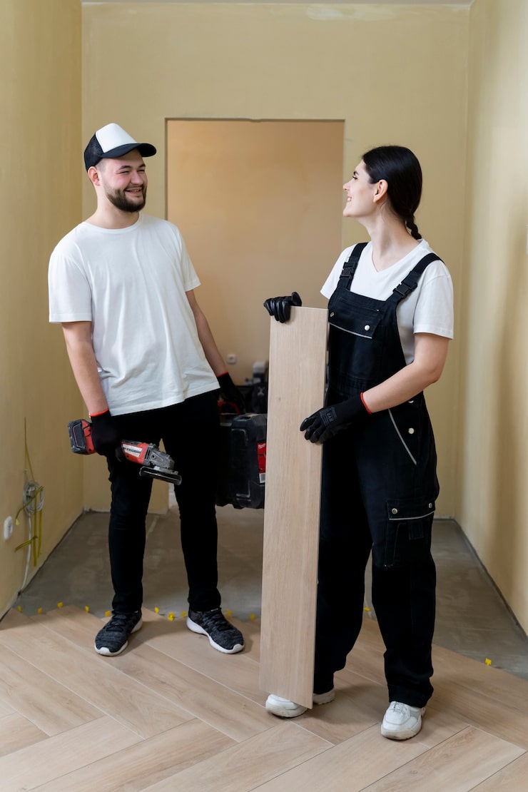 При оформлении интерьера приоритет отдавался практичным и износостойким материалам. В рамках установленного бюджета для напольного покрытия выбрали SPC ламинат с кварцевым наполнителем и реалистичной имитацией древесной текстуры, а для отделки стен – краску и штукатурку. Чтобы сократить расходы, потолок в гостиной был отштукатурен и декорирован лепниной, тогда как в остальных помещениях установили натяжной.