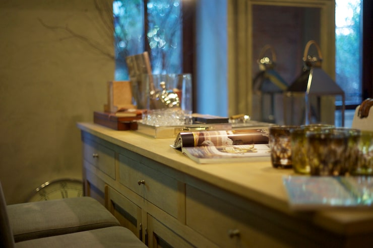 Второй модуль оснащен столешницей, предназначенной для небольшой бытовой техники, такой как чайник и кофемашина. Это позволяет отделить зону приготовления пищи от зоны для напитков, что делает кухню функциональной и удобной для недолгого пребывания. Использованное пространство отличается максимальной практичностью.