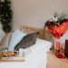 В единой стилистике выбрали люстру, прикроватный столик и подушки. Места отведены двум стульям Вернера Пантона и круглым столиком. Всё оформлено в соответствии с общим тематическим направлением.