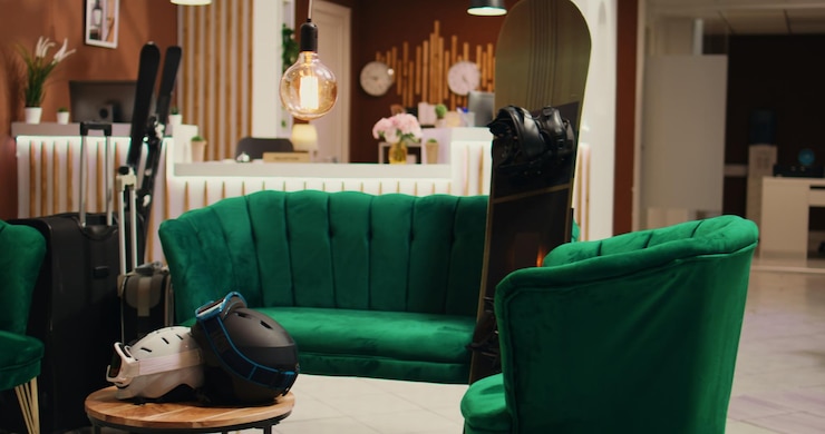 Дизайнер предпочла лаконичную форму мебели с понятными линиями. Мебель не была громоздкой и обильно украшенной деталями. От орнаментов в обивке мягкой мебели также отказались. Цвет замшевого дивана гостиной стал акцентным в этом пространстве, кресла и стулья — более нейтральные.