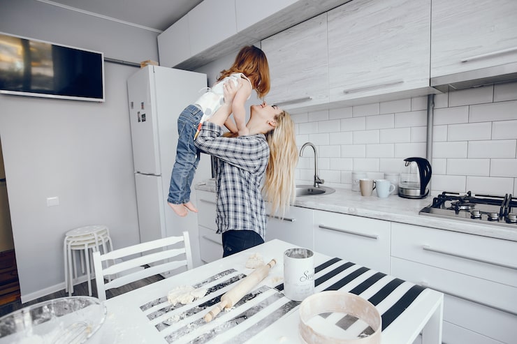 Решение использовать белые стены было принято не только по рекомендации дизайнеров, а скорее по необходимости. Прежде всего, этот цвет помогает скрыть недостатки неправильной геометрии планировки. Кроме того, белые стены – идеальный вариант для комнат с небольшими окнами и недостаточным количеством естественного освещения. И, наконец, белый цвет служит прекрасным фоном для любого оттенка; в данном случае на его фоне особенно выигрышно смотрится насыщенный синий цвет кухни.