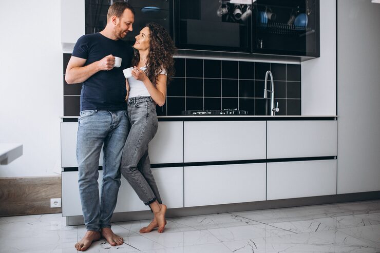 Шведская квартира в черно-белой гамме с акцентом на синей кухне