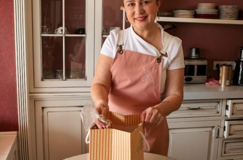 Каждая деталь кухни продумана до мелочей. Распашные фасады сделали проект более экономичным. Сушка для посуды находится в нижнем выдвижном модуле, а над духовым шкафом Ольга разместила отделение для кухонных приборов. В одной из секций предусмотрена розетка для установки микроволновой печи. Белый холодильник гармонично дополняет общий стиль кухни, создавая единое композиционное восприятие.