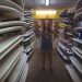 На другой стороне кухонного пространства расположились колонны, в которых встроены холодильник и духовой шкаф, а между ними находится небольшой диван. Над диваном установлены антресольные шкафы, предназначенные для хранения вещей, которые используются нечасто.