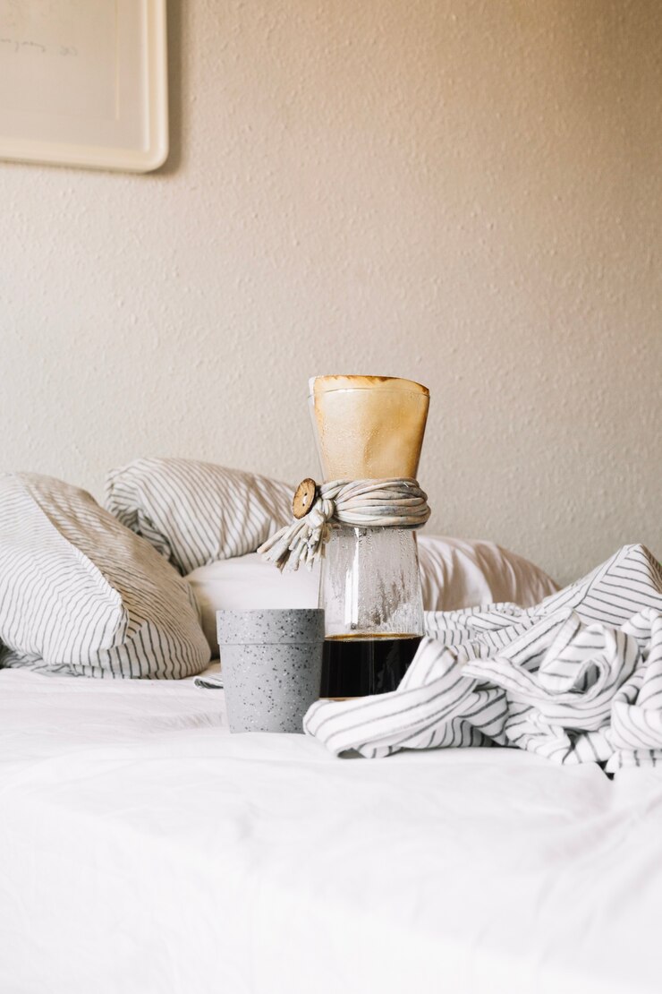 Скандинавская спальня не ограничивается белым цветом. В качестве основы можно использовать обои с деликатным рисунком, а интерьер дополнить мебелью лаконичного дизайна. Не стоит забывать и о комфортном текстиле.