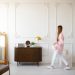 Еще одна зона отдыха возле бассейна оформлена в расслабляющем стиле – небольшой плетеный диванчик из светло-серого ротанга оснащен мягкими, съемными спинками и сиденьями. Вместительный столик с двухъярусной конструкцией, металлическим каркасом и столешницами из темной древесины, гармонично завершил уютную обстановку.