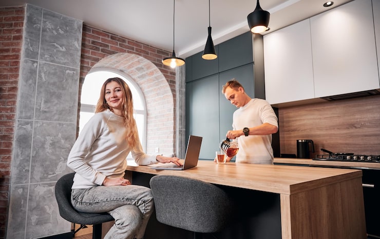 В результате проведенной перепланировки кухня приобрела открытую планировку и ощущение простора. Стены покрасили в светлые тона, на полу появился ламинат с приятной текстурой натурального дерева, а от верхних шкафов отказались, сохранив лишь минималистичные белые нижние секции.