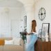 Стены были окрашены в белый цвет, а на пол уложили светлый ламинат. Мебель в интерьере отличается современным дизайном. Часть предметов заказчица привезла из своей прежней квартиры, и они гармонично вписались в новое пространство. Так, советское кресло в ткани букле, которое она приобрела на Авито много лет назад и отреставрировала, стало частью нового интерьера.