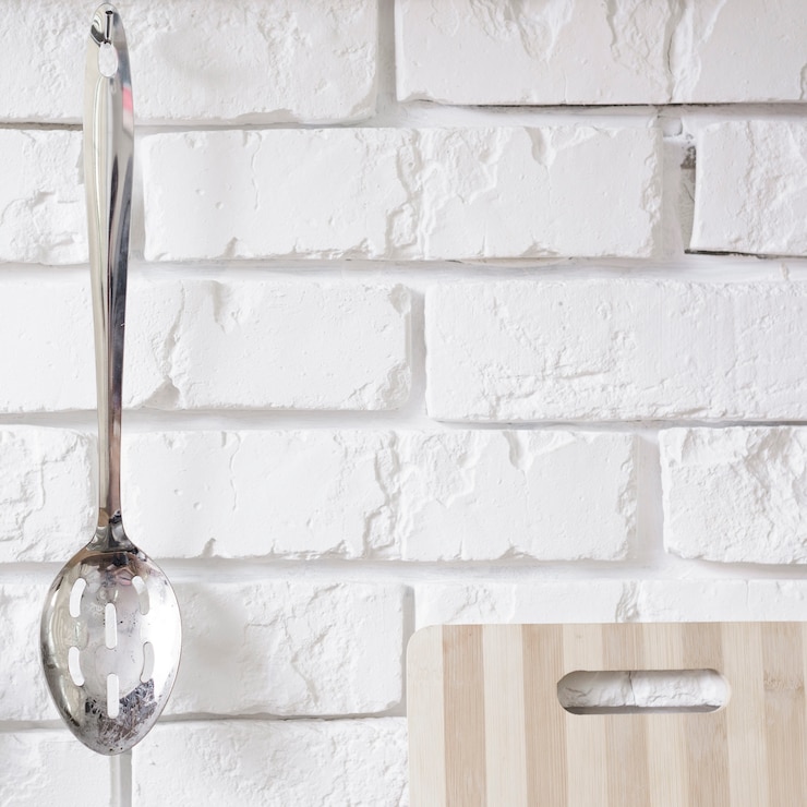 Дизайн кухонного фартука, вопреки ожиданиям, был подобран в соответствии с предпочтениями хозяйки и её любимыми бокалами для мартини, которые видны сквозь стекла шкафчиков. Зонирование пространства выполнено с помощью цветового решения плитки: в районе бара установлен темный фартук, а на противоположной стене, в зоне приготовления пищи, – светлый.