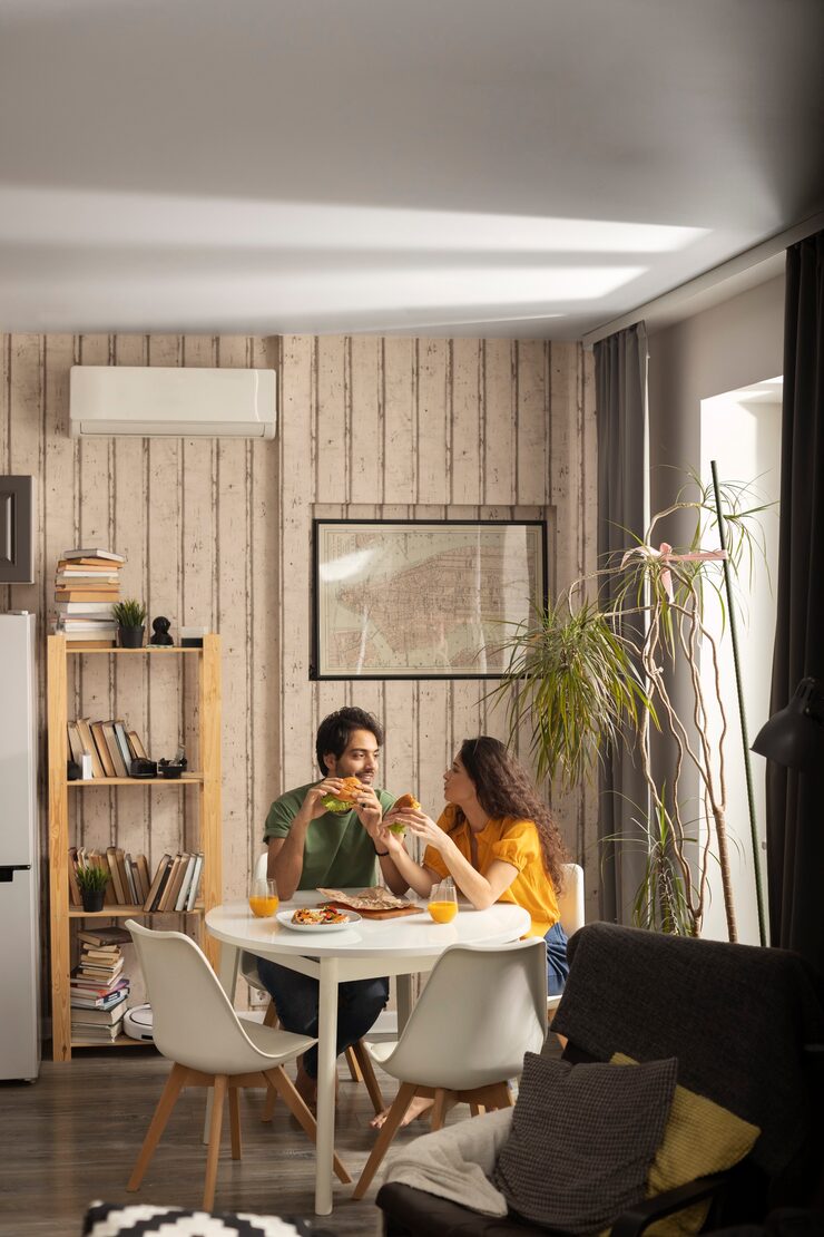 на 46 квадратных метрах, где разместились жилая комната, кухня и ванная, наступила совершенно новая, более изящная эпоха.
