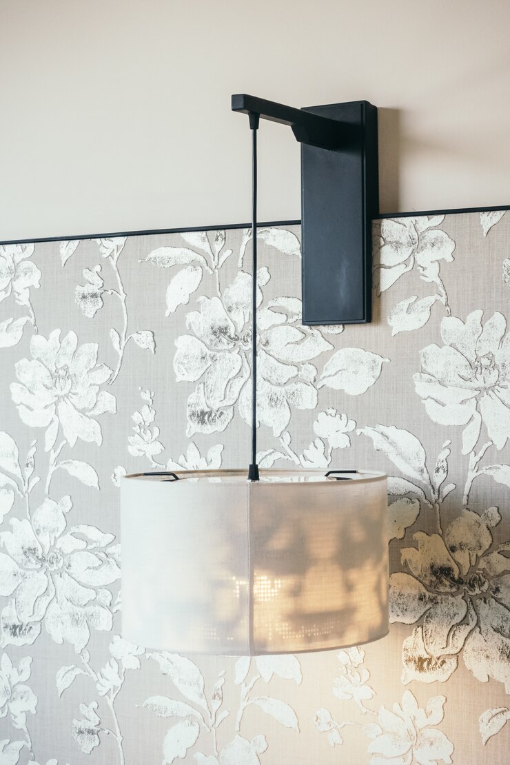 В помещениях стены покрасили белой краской, за исключением детской для девочек. В ней стены сделали серыми и оформили нижнюю часть обоями. Обои также были использованы в постирочной. Полы во всех комнатах выложены доской из массива дуба. Для придания стенам мастер-спальни большей фактурности их облицевали кирпичом перед покраской.