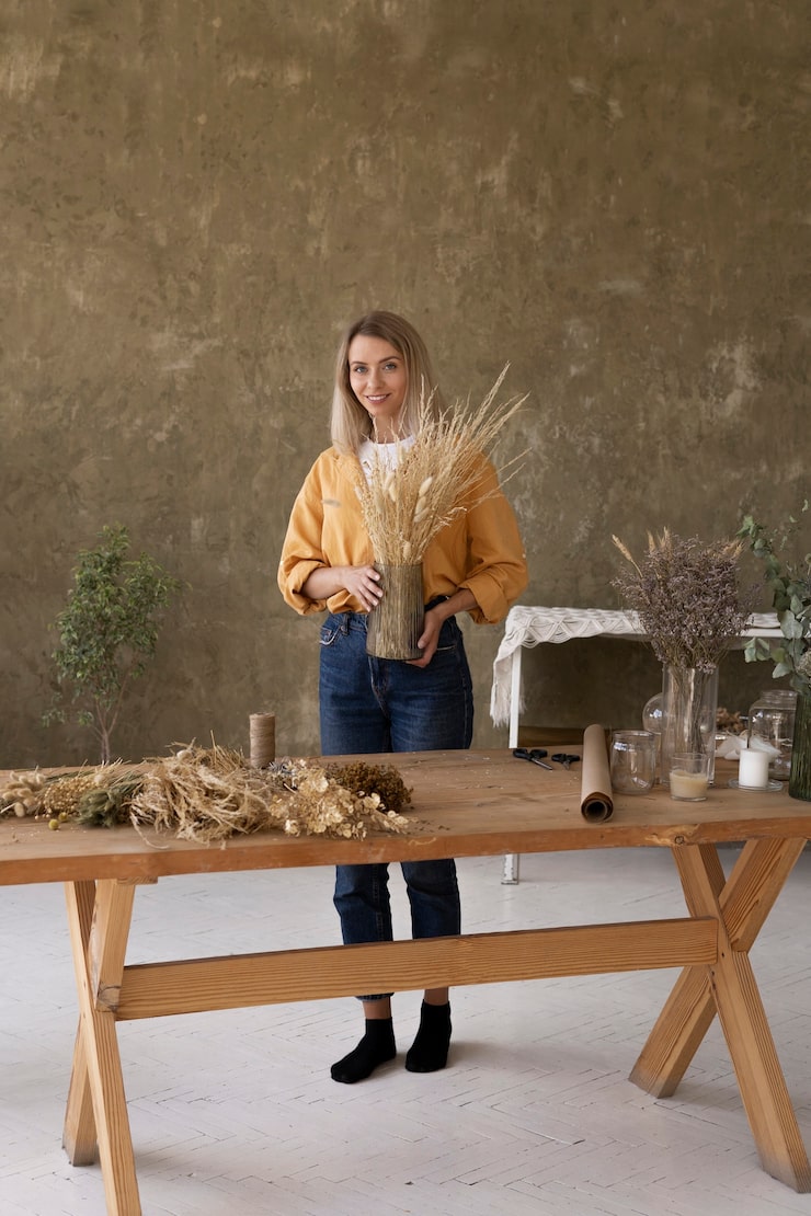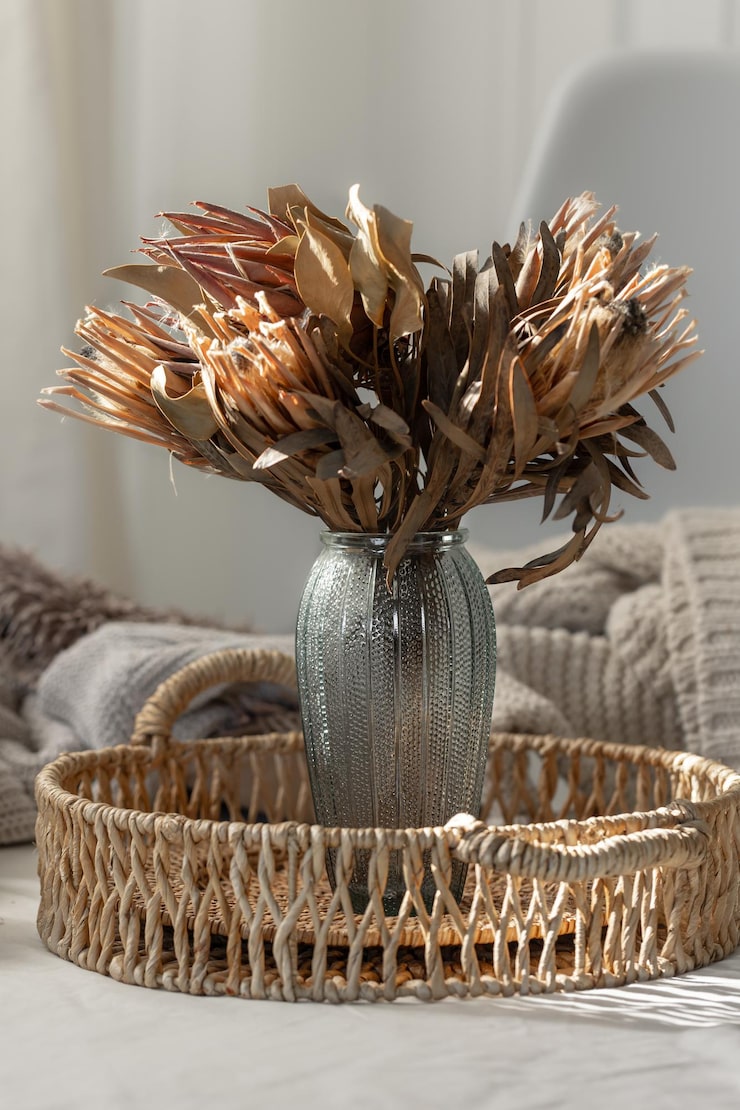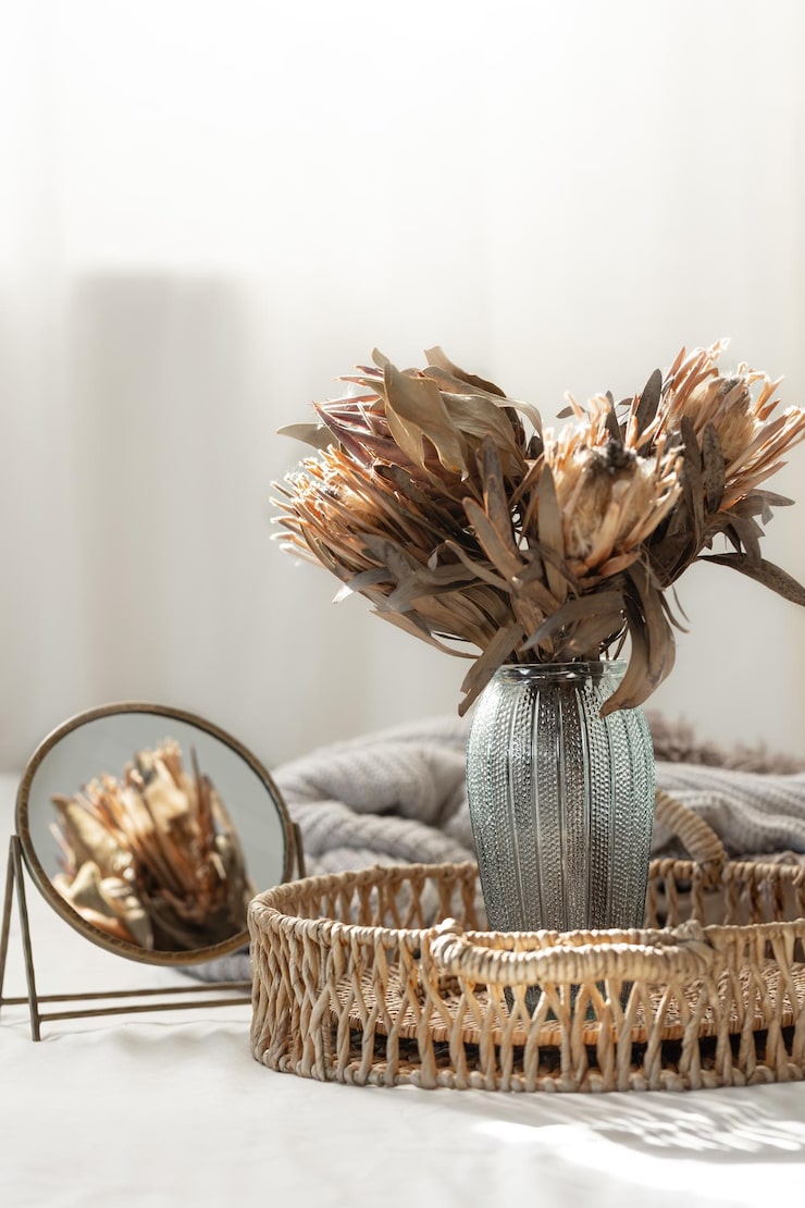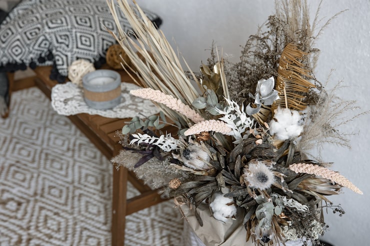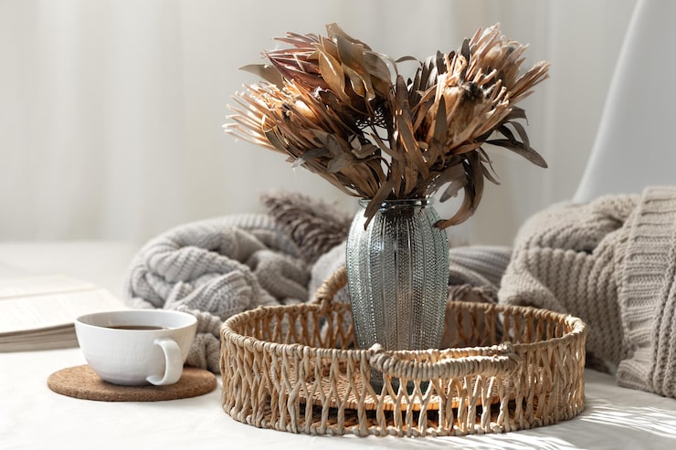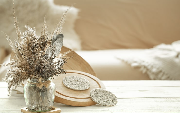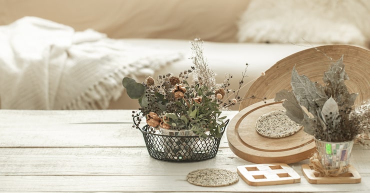 В оформлении интерьера используйте цветы, фотографии в рамках, изделия из текстиля ручной работы.