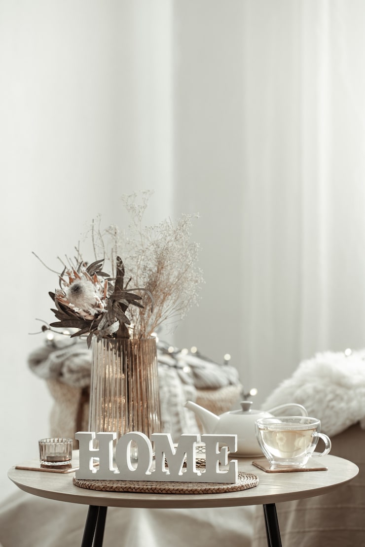 Добавьте несколько декоративных элементов: мягкие подушки, семейные фотографии в рамках, живые цветы на столе.