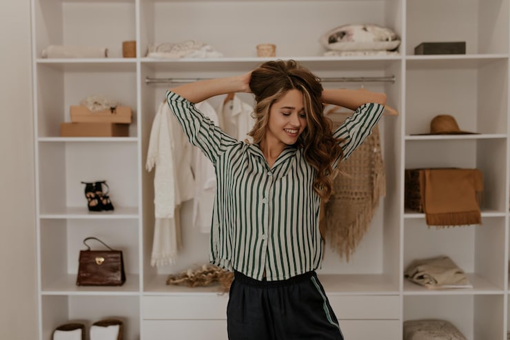 Даже в небольшой гардеробной можно организовать удобное хранение вещей. В первую очередь стоит позаботиться о поддержании комфортной температуры. Чтобы избежать появления нежелательных запахов, необходимо обеспечить проветривание – система вентиляции может быть настроена на одновременное включение вместе с освещением. Кроме того, для ароматизации пространства можно использовать саше с приятными запахами.