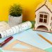 В гостиной, спальне и кухне предусмотрено по два входа, и каждое из этих помещений находится в поле зрения соседних. В связи с этим возникла потребность в стилистическом объединении этих помещений посредством единого декоративного элемента. Решить эту задачу удалось с помощью однообразных геометрических узоров, нанесенных на ковры, подушки в гостиной и обоях в спальне.