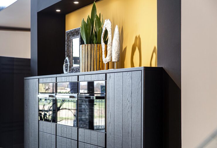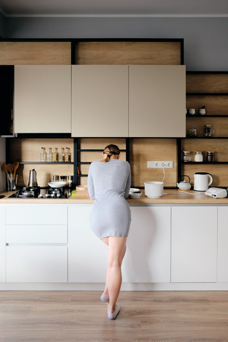 В настоящее время одноцветные и сдержанные кухонные фасады теряют свою актуальность. Верхние и нижние секции кухонного гарнитура должны различаться, если не по цвету, то хотя бы по текстуре поверхности. Также наблюдается повышенный интерес к различным оттенкам синего и натуральным древесным тонам.