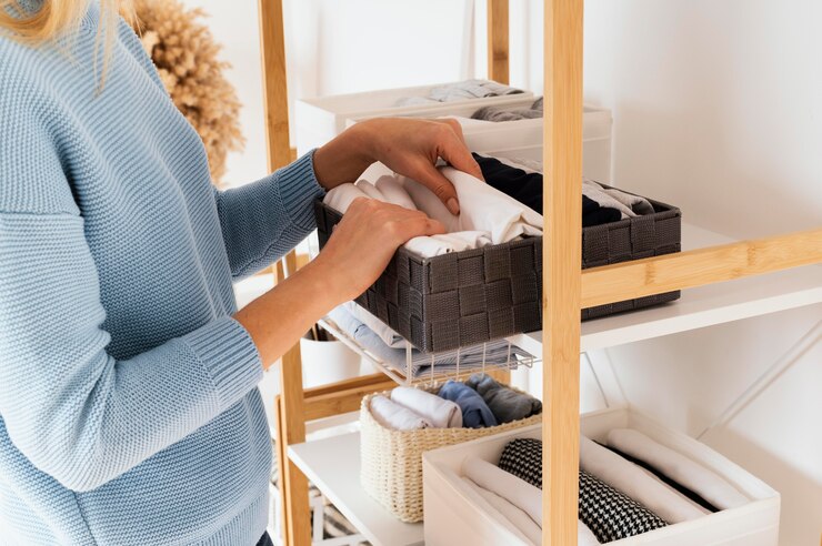 Помимо закрытой системы хранения, в ванной комнате также предусмотрены открытые полки, расположенные рядом с раковиной. Они позволяют оперативно получать необходимые предметы, выглядят лаконично и современно.