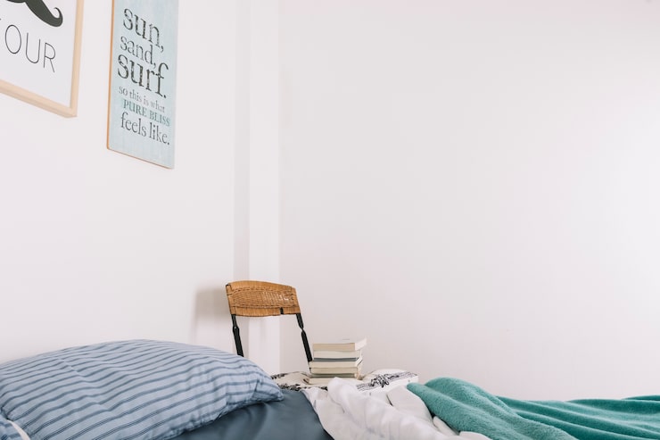 В отличие от акцентных цветов, используемых в прихожей и на кухне, здесь цветовая гамма способствует расслаблению и созданию атмосферы отдыха.