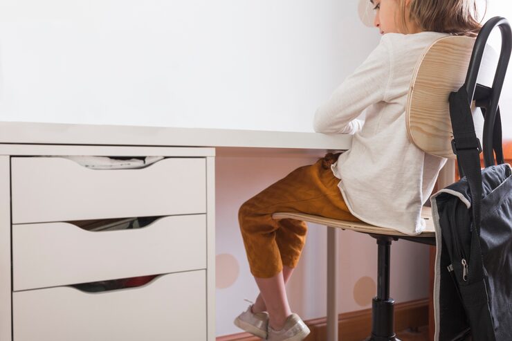 Теперь перенесемся в зону для учебы. Тщательная организация пространства имеет большое значение: если рабочая зона хорошо спланирована, концентрация внимания у ребенка улучшится, и выполнение домашних заданий займет меньше времени.