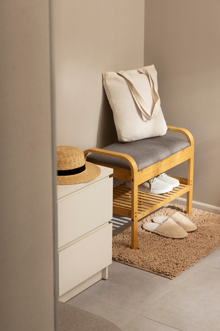 Компактный пуф с грубой вязкой создаст уютную атмосферу в прихожей, гостиной или на балконе. Съемный чехол, который можно стирать в машине, поможет избежать накопления пыли.