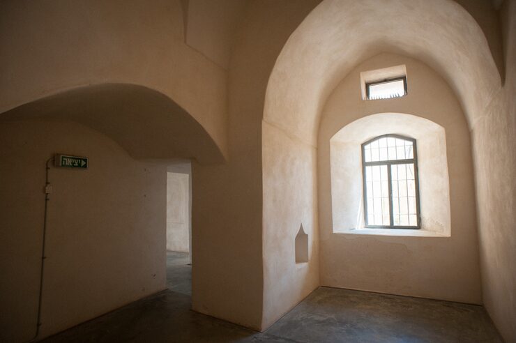В спальне использована палитра, располагающая к отдыху: стены выкрашены в белый цвет, а область кровати акцентирована аркой горчичного оттенка, что отсылает к образу восходящего солнца. Такой прием наполняет комнату энергией и создает ощущение радости. Учитывая скромные размеры спальни, для зрительного расширения пространства была установлена гардеробная с зеркальными дверцами.