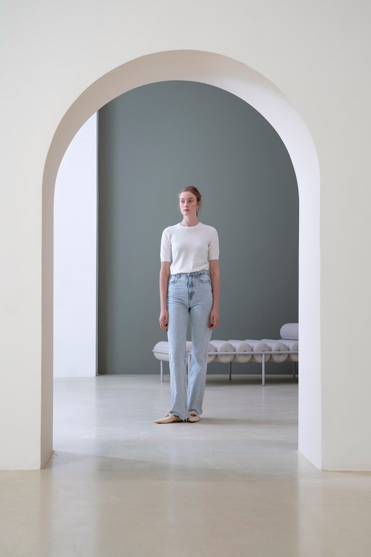 Изначально квартира передавалась от застройщика в состоянии «бетонная коробка», при этом ванная комната, туалет и лоджия были уже предусмотрены. Согласно новой планировке, предусмотрена спальня, гардеробная, скрытая за плотной шторой, постирочная, а также общее пространство, объединяющее прихожую, гостиную, столовую и кухню.