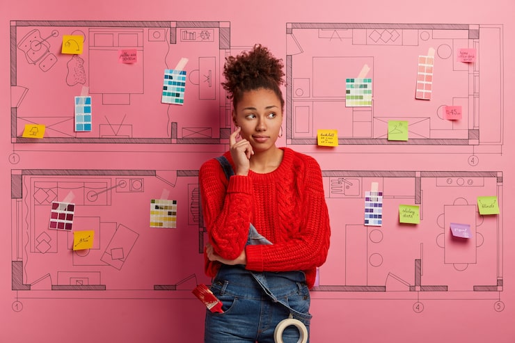 При оформлении интерьера для достижения гармонии был применен принцип подобия. К примеру, геометрические формы нашли отражение в текстиле и вазах. Черная окантовка подушек повторяется в квадратном светильнике, а ромбовидный узор на подушках и геометрическая ваза соответствуют форме стеллажа. Аналогичный принцип использован и в цветовой гамме.