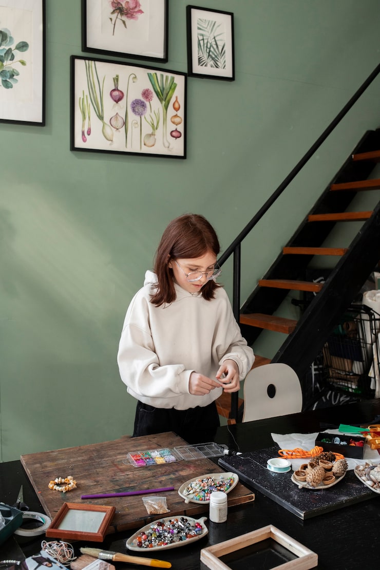 В квартире преимущественно мебель, изготовленная столярами, которую мы выбирали с учетом финансовых возможностей. Главное внимание было уделено произведениям искусства: у нас большая коллекция винтажных картин. Так, на кухне можно увидеть крупную акварель под названием «Сбор урожая». Также имеется офорт с изображением незнакомки, которую моя подруга прозвала Рая, датированный 1898 годом — автора, к сожалению, не установлено.