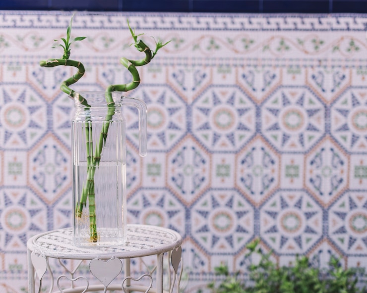 Расположенные по обе стороны от мягкой зоны, два функциональных столика-подставки стали полезным дополнением к изысканному интерьеру. Элементы восточного стиля в дизайне легкой мебели добавили этнических ноток в оформление всей террасы.