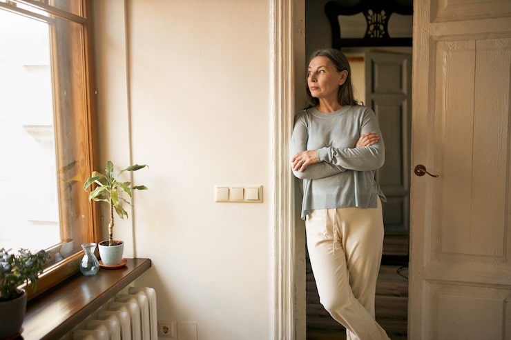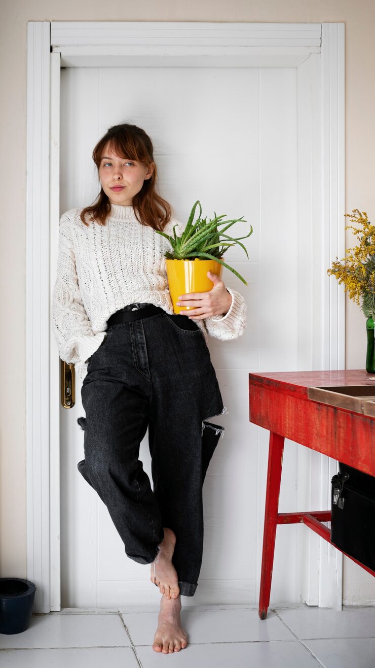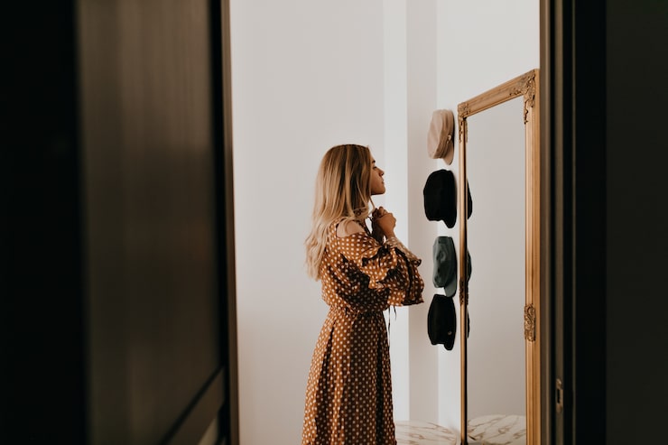 Зеркало, находящееся над столиком, отражает свет, поступающий через окно, и наполняет комнату мягким, теплым свечением. Это создает ощущение легкости и воздушности, а также добавляет уюта и комфорта в прихожую. Мягкий пуф служит ярким элементом декора и может использоваться для удобства при обувании и нанесении макияжа.