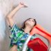 Чтобы разнообразить белые стены, использовали оригинальную плитку, отказавшись от привычного дизайна «кабанчик» и выбрав плитку с полосками. При этом плитку выложили до потолка, что визуально увеличивает пространство по сравнению с интерьерами, где по всему периметру установлены шкафы до самого потолка.