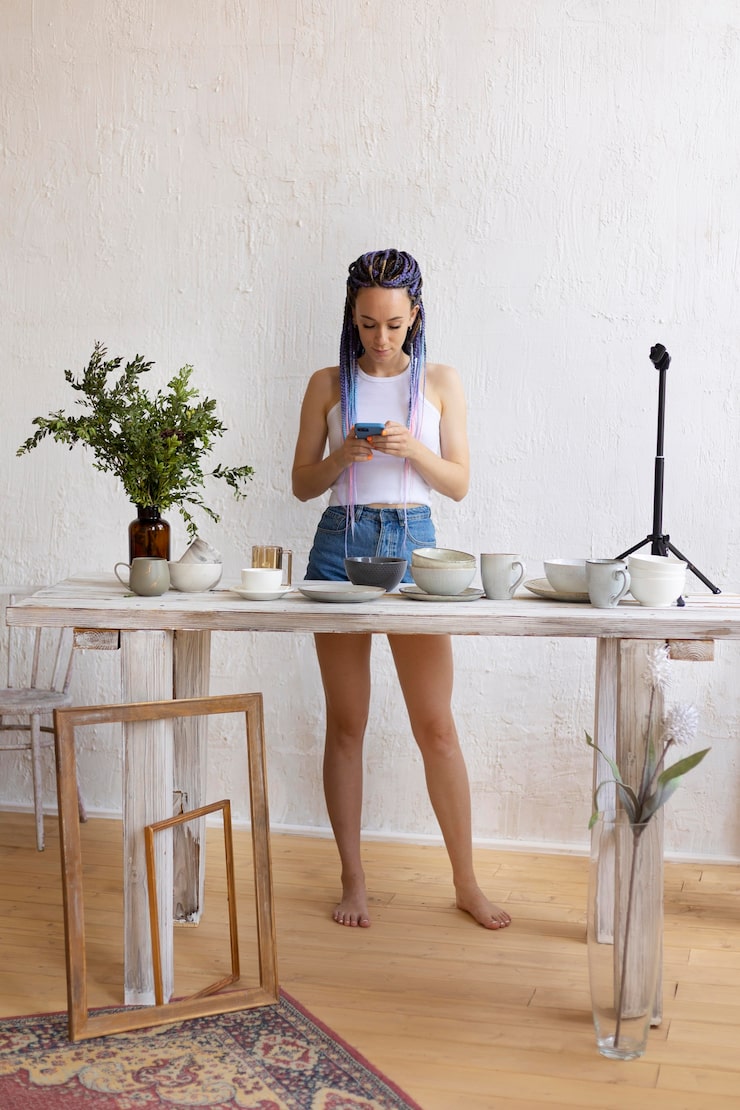 Алия Тауасарова, основательница AK Studio и дизайнер, при создании интерьера своей квартиры использовала насыщенные цвета и оригинальные дизайнерские решения, что позволило создать неповторимый стиль с яркими акцентами. Для ванной комнаты, предназначенной для работы, был выбран керамогранит, имитирующий мрамор, для стен, и терраццо для напольного покрытия.