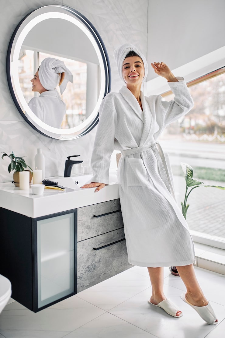 «В ванной комнате хранятся полотенца и халаты, которые используются после принятия душа. Эти предметы также требуют своевременной сушки, чтобы сохранять свежесть. В настоящее время наблюдается тенденция к использованию матов теплого пола не только на полу, но и на стенах. Это представляет собой интересное и практичное решение, позволяющее избежать лишних, загромождающих пространство элементов, особенно в небольших комнатах. Благодаря теплому полу, расположенному на стене, можно отказаться от отдельного полотенцесушителя, что сделает помещение более аккуратным и сбалансированным. Перед установкой теплого пола на стене необходимо заранее продумать расположение крючков, чтобы можно было вешать вещи непосредственно на обогреваемую поверхность, обеспечивая их сушку и освобождая стену от дополнительных аксессуаров».