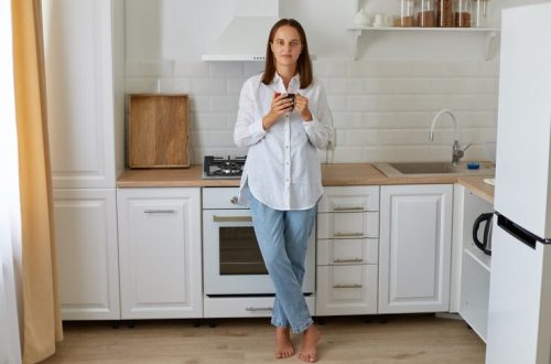 Чтобы создать иллюзию более высокого потолка, используйте узкие и вытянутые вверх стеллажи или открытые полки, доходящие до самого верха. Рекомендуется отдавать предпочтение изделиям из светлого дерева, чтобы избежать перегруженности пространства.
