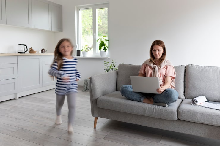 Низкий стеллаж разделил одну из комнат на две части. Это позволило выделить гостиную с диваном и телевизором, а также пространство для спальни мамы. Вторая комната была полностью оформлена для дочери.