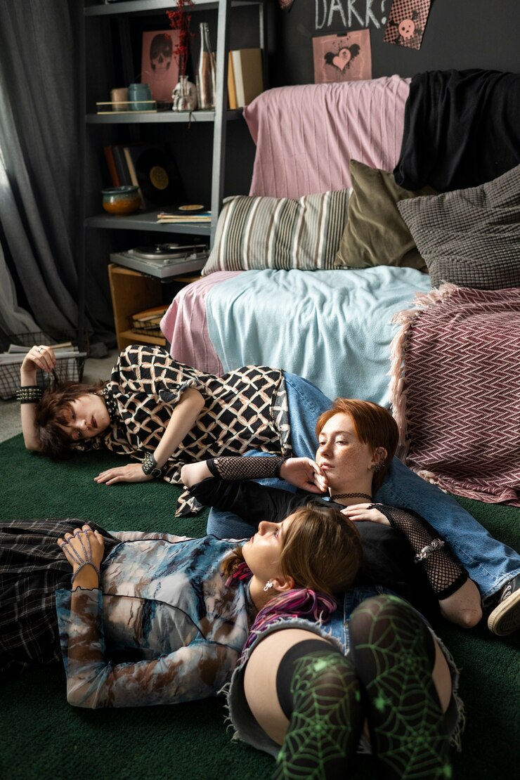 Провели демонтаж старой отделки, окон, коммуникаций и дверей, после чего установили новые. На полу проложили кварцвиниловую плитку, формируя единый контур, а подготовленные гладкие стены дополнили декоративными панелями в соответствующем цвете, чтобы подготовить их к покраске. Для спальни подобрали обои с изображением медуз и растительных мотивов, чтобы создать атмосферу уюта и ощущение глубины.