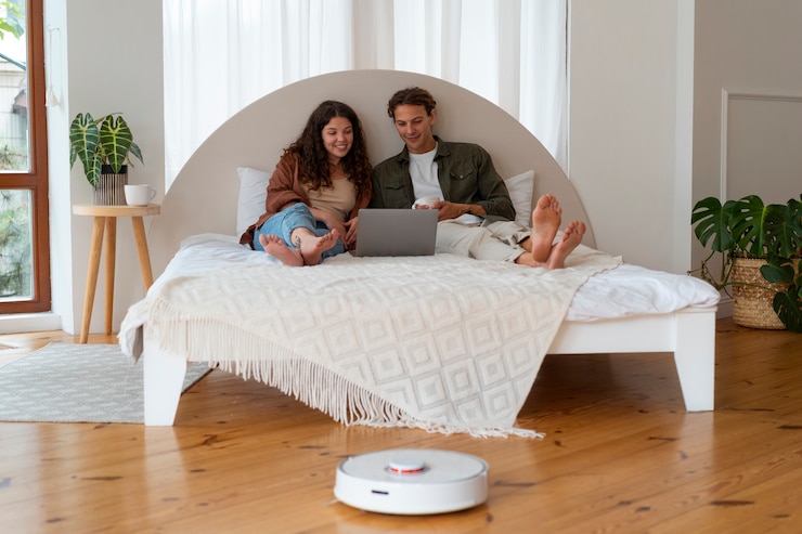 Первым этапом работ была выполнена перепланировка: демонтировали перегородку, установленную застройщиком, которая разделяла коридор и жилую комнату. Жилая комната была разделена на гостиную и спальню с помощью декоративных панелей, что обеспечило большую приватность спальной зоны. Санузел увеличили на 250 мм в сторону коридора, что позволило организовать все необходимое в «мокрых» помещениях, включая стойку для хранения хозяйственных принадлежностей. В стойке разместили стиральную машину, бытовую химию и корзину для белья.
