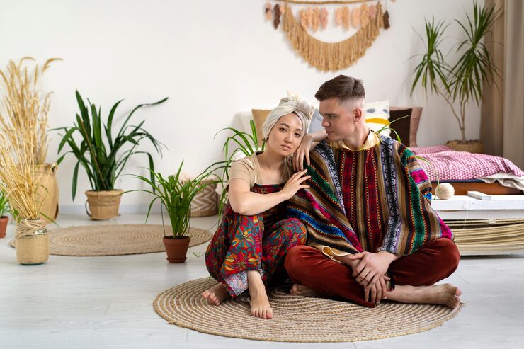 Выбран очень самобытный, уютный и располагающий к общению образ. В его основе лежат такие оттенки, как песочный, шоколадный, табачно-коричневый, бежевый, черный, а для создания акцентов добавлены бирюзовый, фиолетовый и капри.