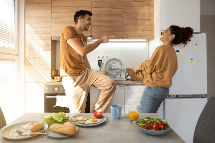 Размещайте часто используемые мелочи неподалеку от плиты. К примеру, специи и масла удобно расположить слева от плиты, а прихватки — справа. Это облегчит процесс приготовления пищи. Кроме того, рекомендуется выделить отдельную полку для всего необходимого для заваривания чая и кофе, а под раковиной организовать небольшой отсек для моющих средств.